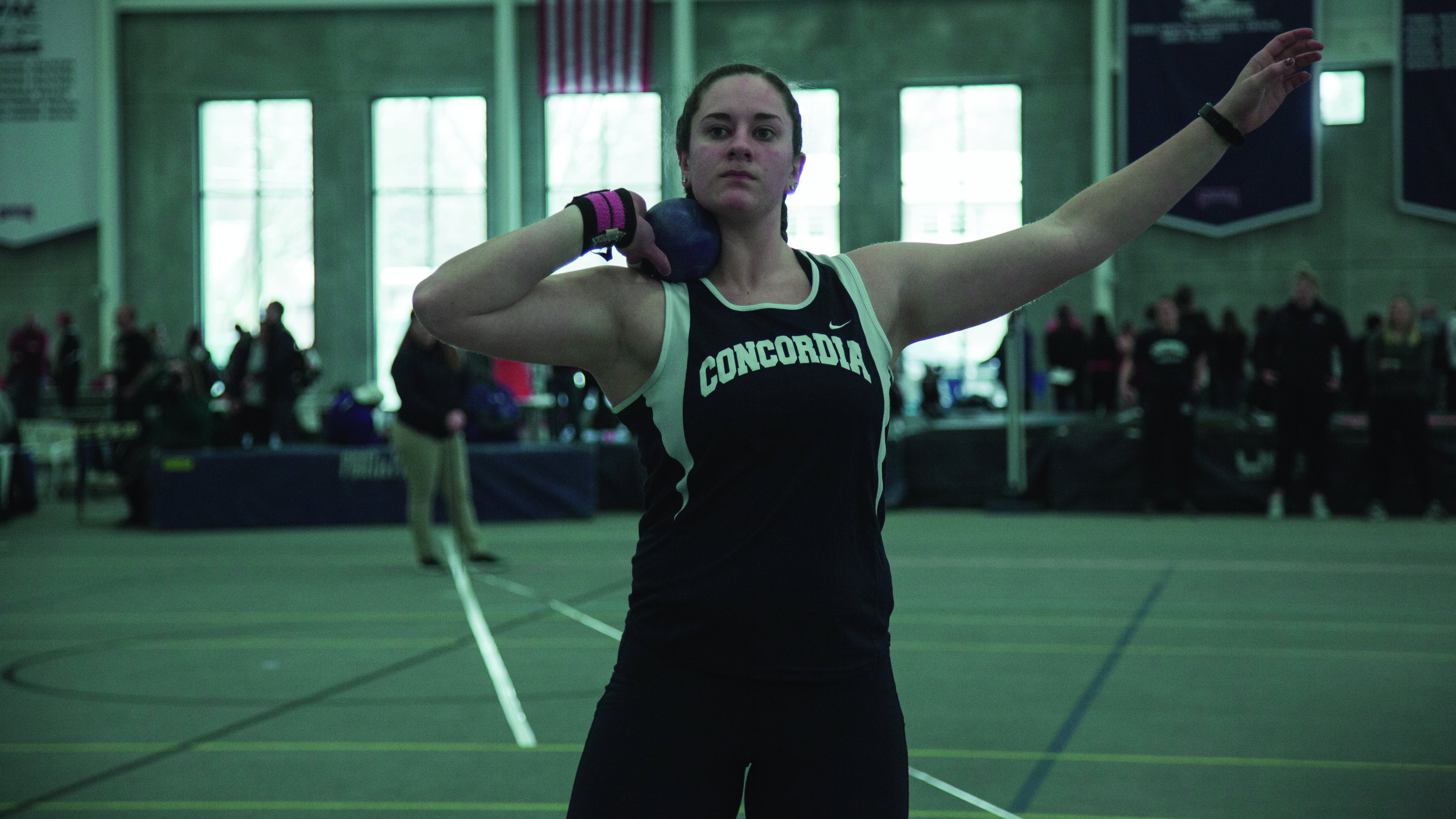 She set a school record in shot put, which beat competitors by well over a foot, hitting the 49’ 5” mark. This was more than enough to make her a national champion and help her contribute 14 points to the Concordia team’s total of 22 points.