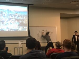 “I thought the play was a lot of fun,” said Aleksa Chambers, a junior audience member. “I really appreciated the extra costumes. I really liked Chaos Boy’s costume, and the kind of stereotypical superhero tropes…It’s kind of crazy how they come up with these complex plots in 24 hours.”