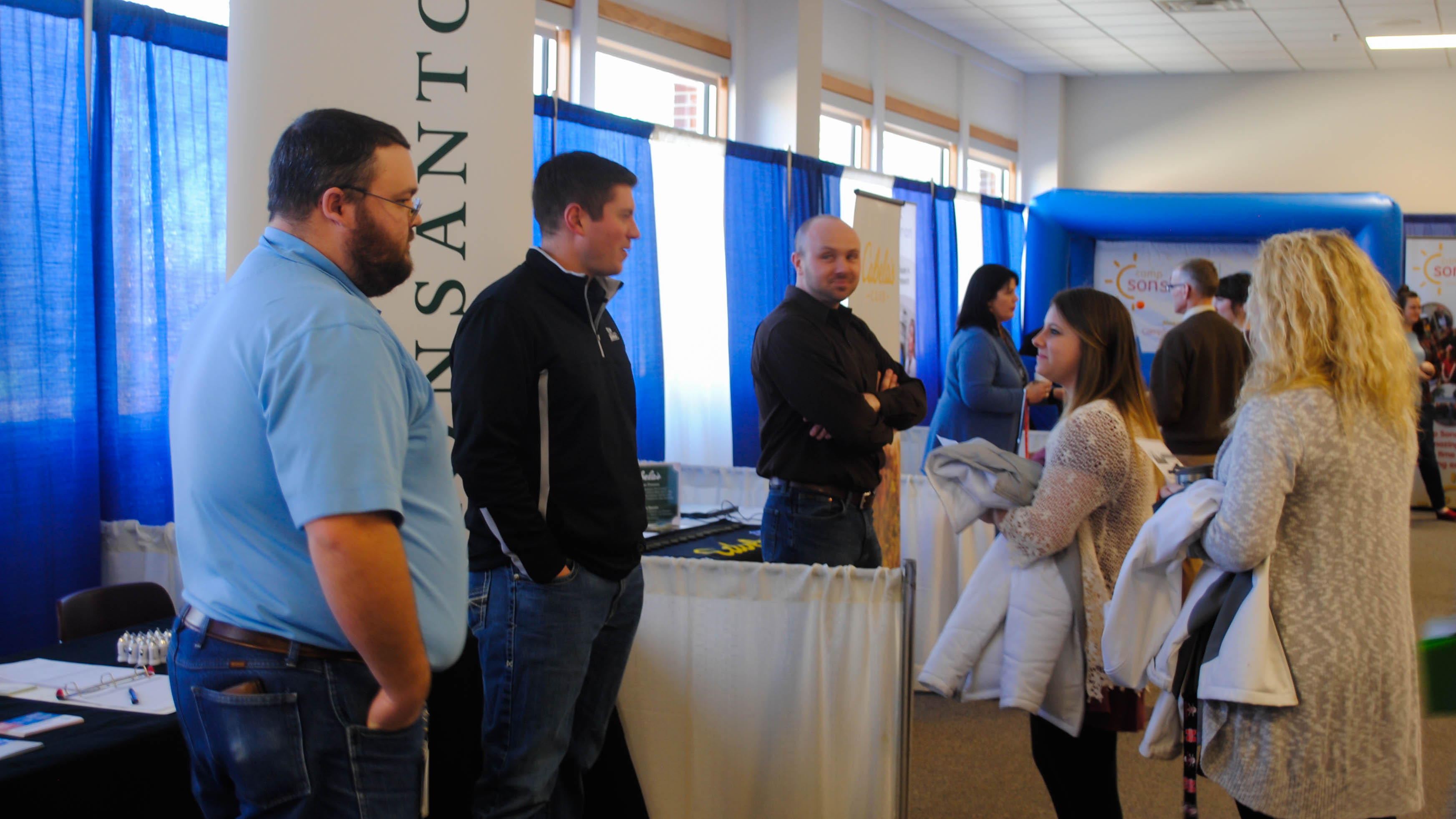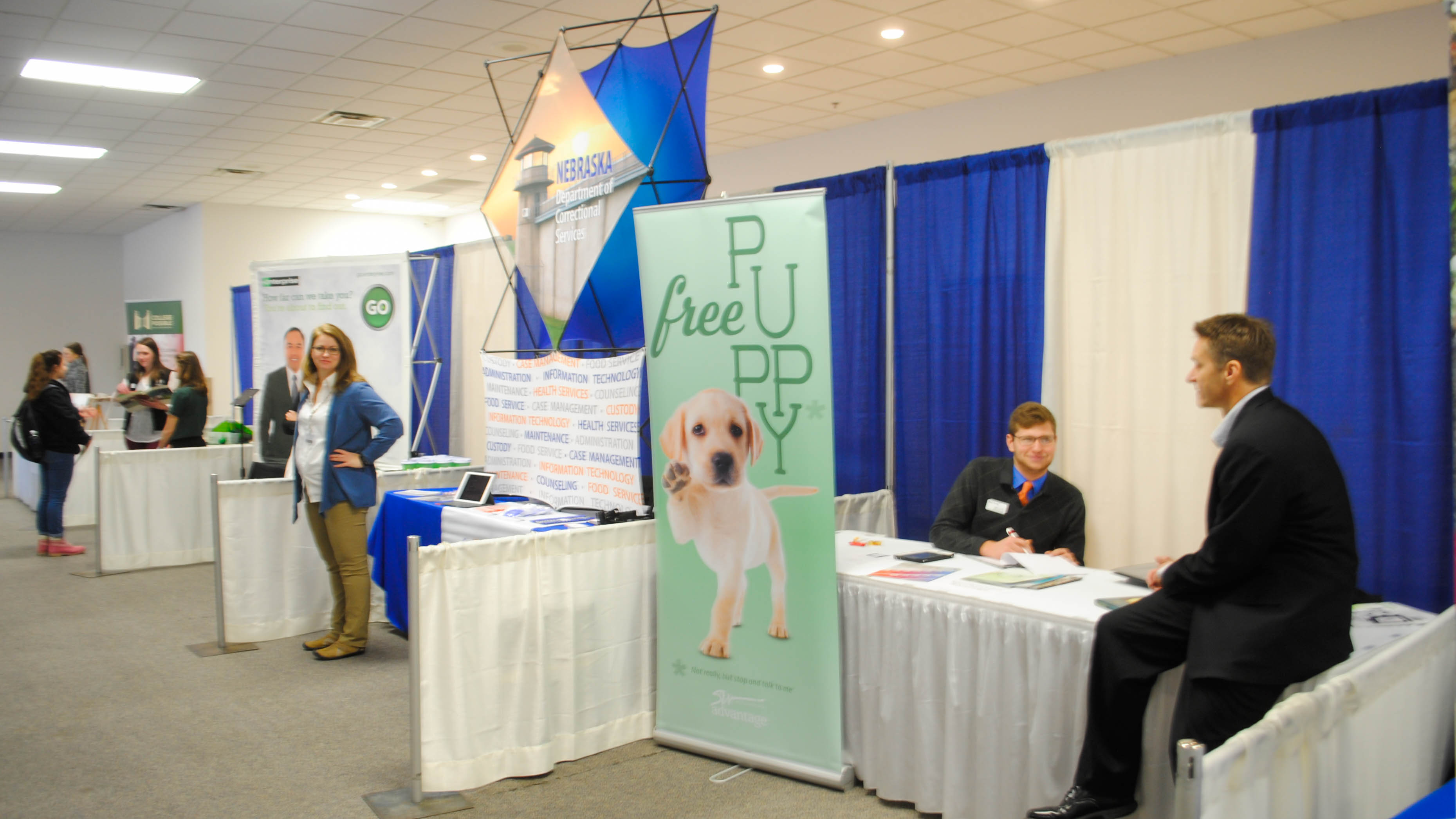 Students engaged with employers from Menards, Cabela’s, Sandhills Publishing and Hudl, a software company for coaches and athletes, in Janzow’s Cattle Conference Room. There were also representatives from education programs, summer camps, Creighton University’s nursing program, UNL law school and some military organizations.
