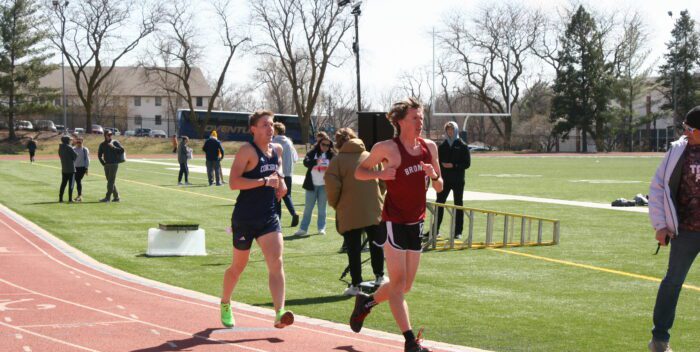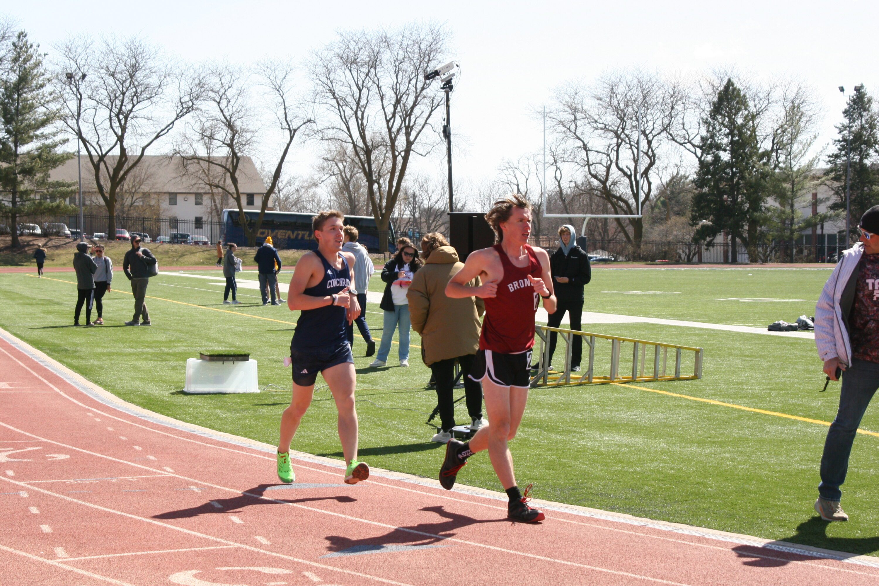 Junior Luke Hammang participates in a men’s race, behind a runner from another school (photo from 2024-25 season).