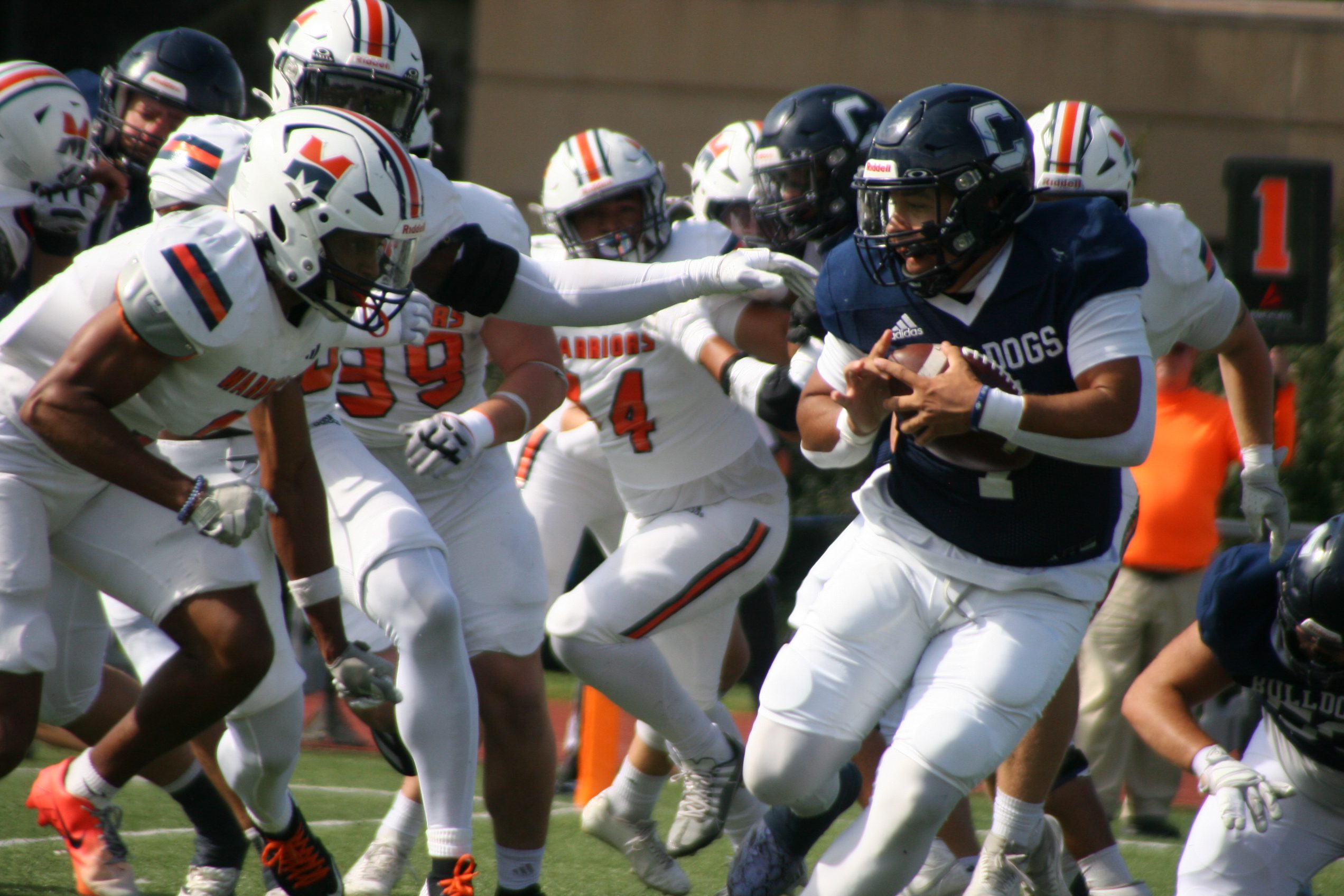 Van Cleave was the go-to receiver as he caught for 145 yards and two touchdowns, but he also got 30 carries for 110 yards and a touchdown at running back as junior Carlos Collazo was out injured.