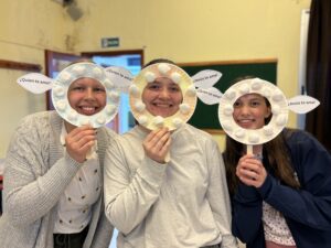 Abby Heemstra, Bethany Gebhardt, and Rachel Ada show off the craft they set up for their students. Photo: Maddy Peters.
