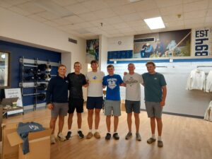 Bulldog men’s golf team members pick up their textbooks from the Fan Shop on Aug. 15. Photo: Nora Betts.