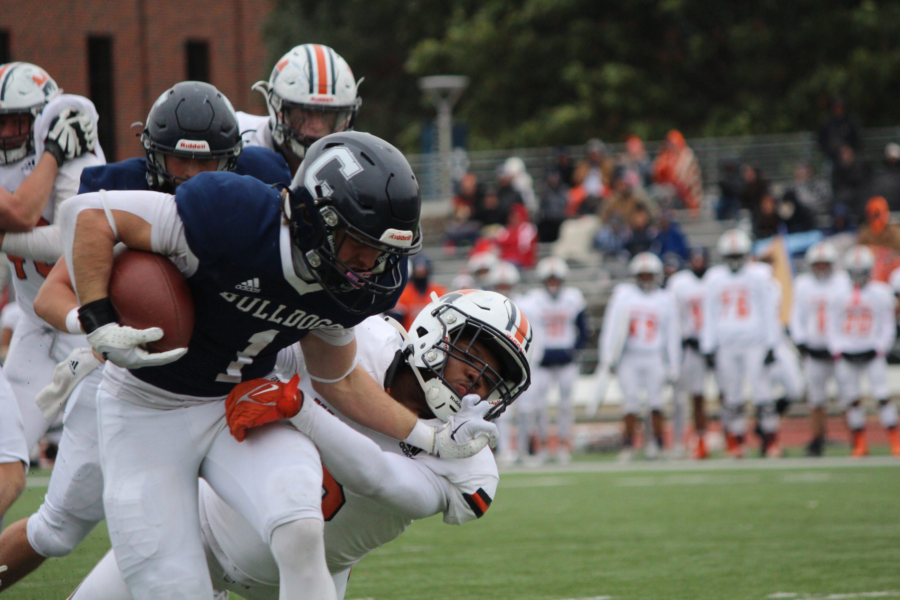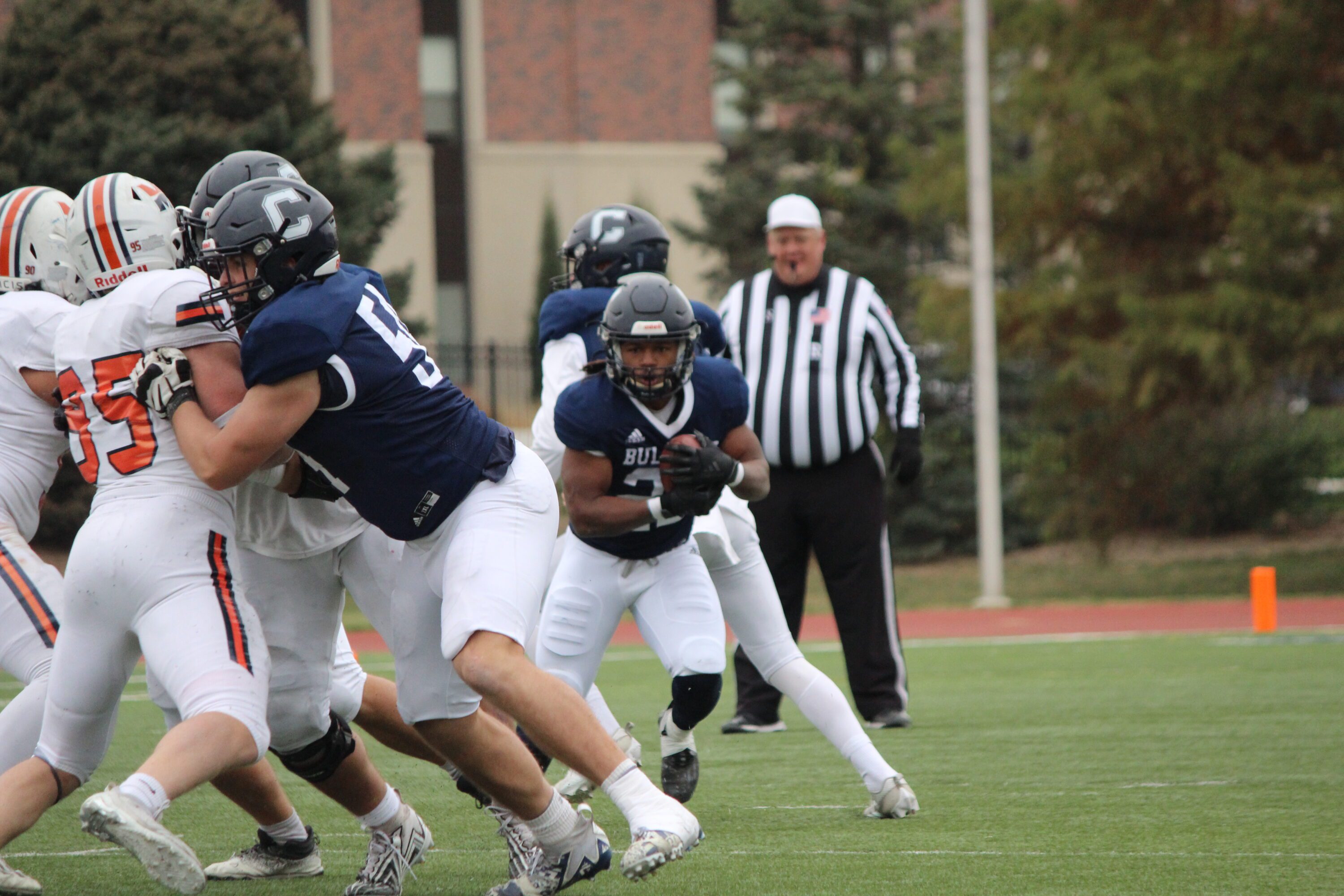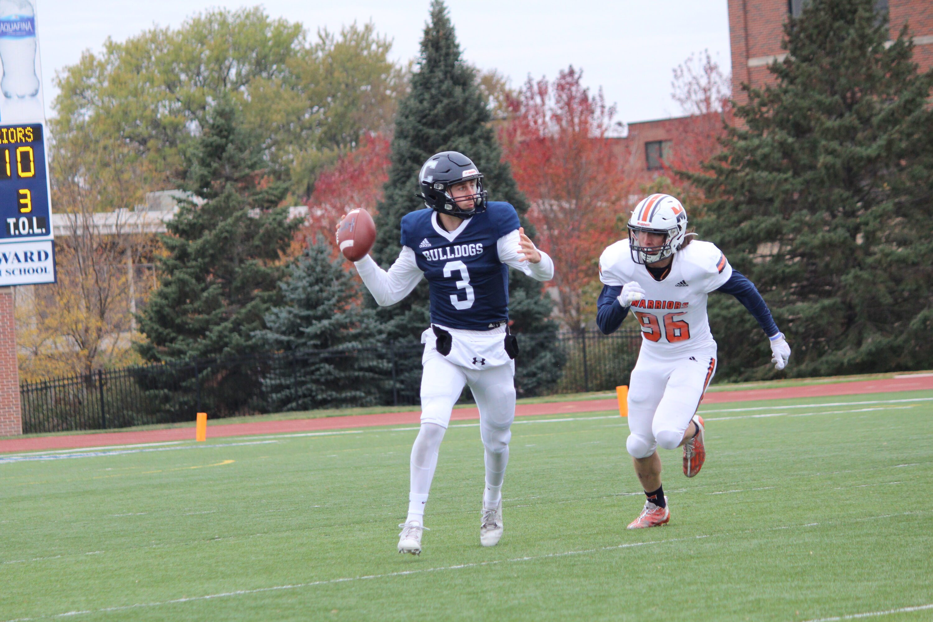 - Junior, Jake Jablonski, trying to avoid a tackle.