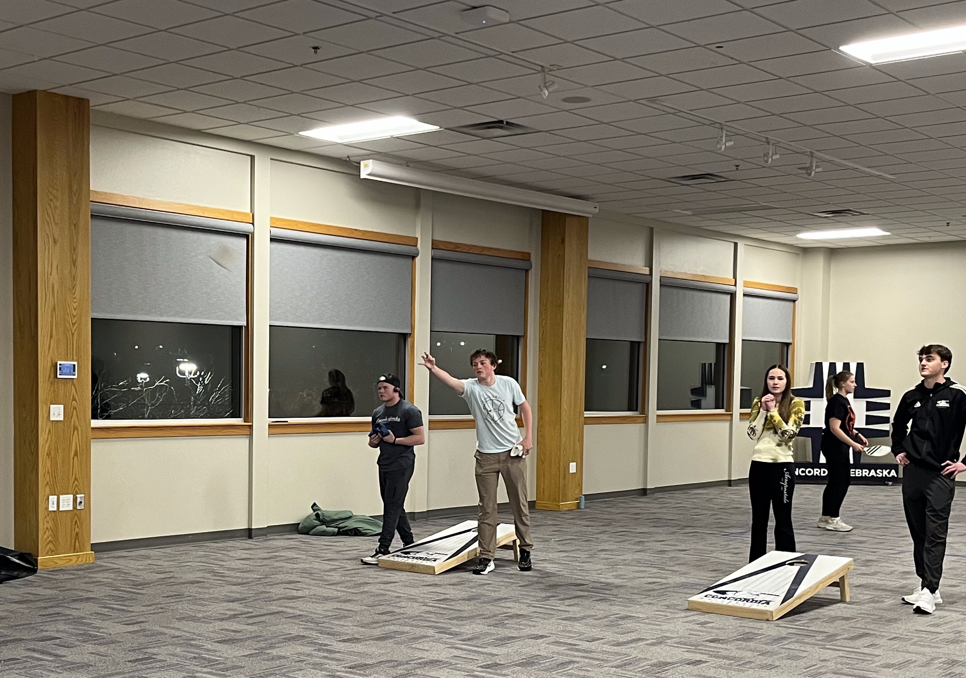 Students braved the cold on Saturday night to enter an indoor sports tournament in the Cattle Conference Room hosted by a group of Resident Assistants and Intramurals staff.