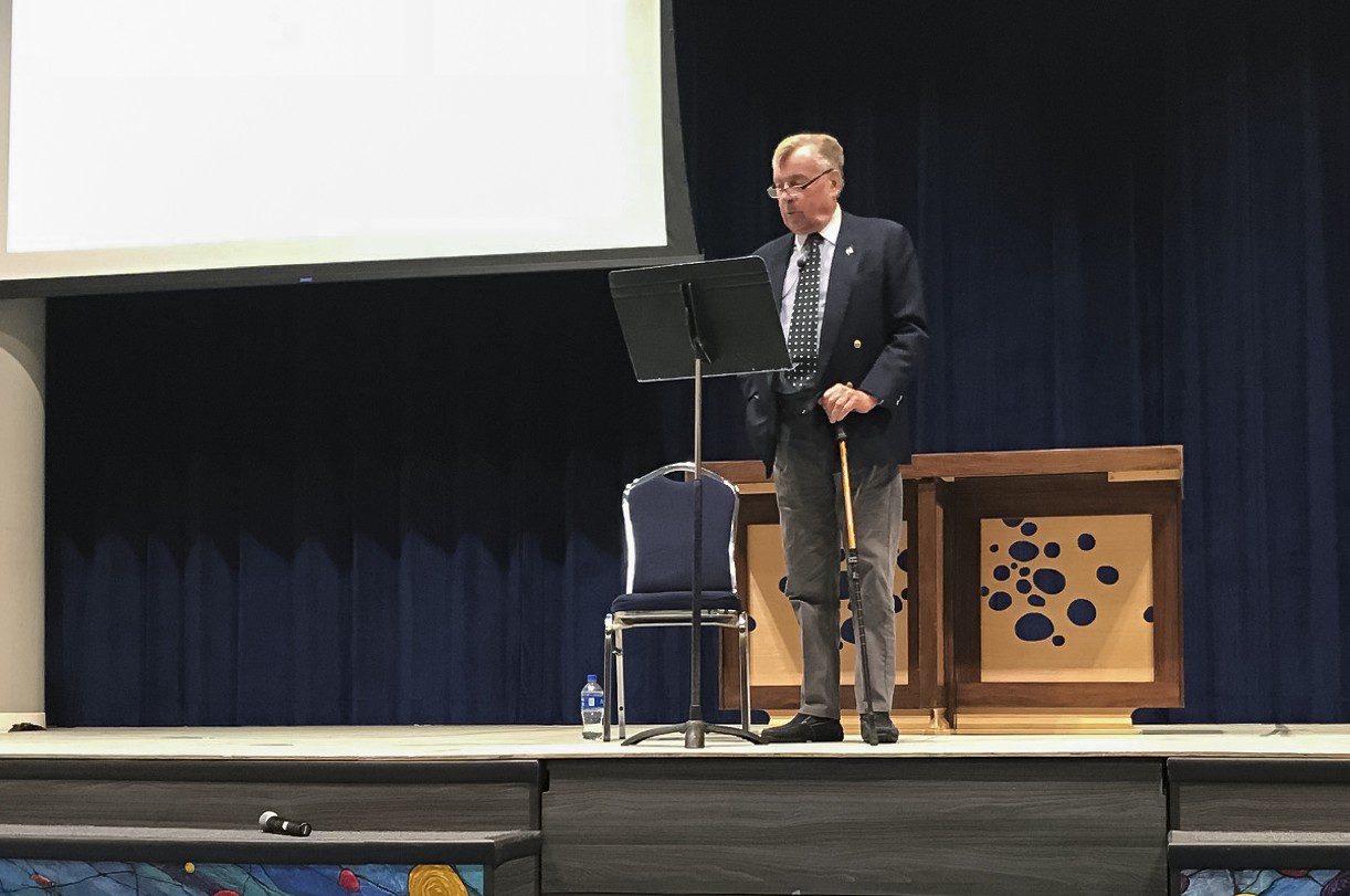 Dr. Uwe Siemon-Netto speaks on Concordia’s campus in 2018.