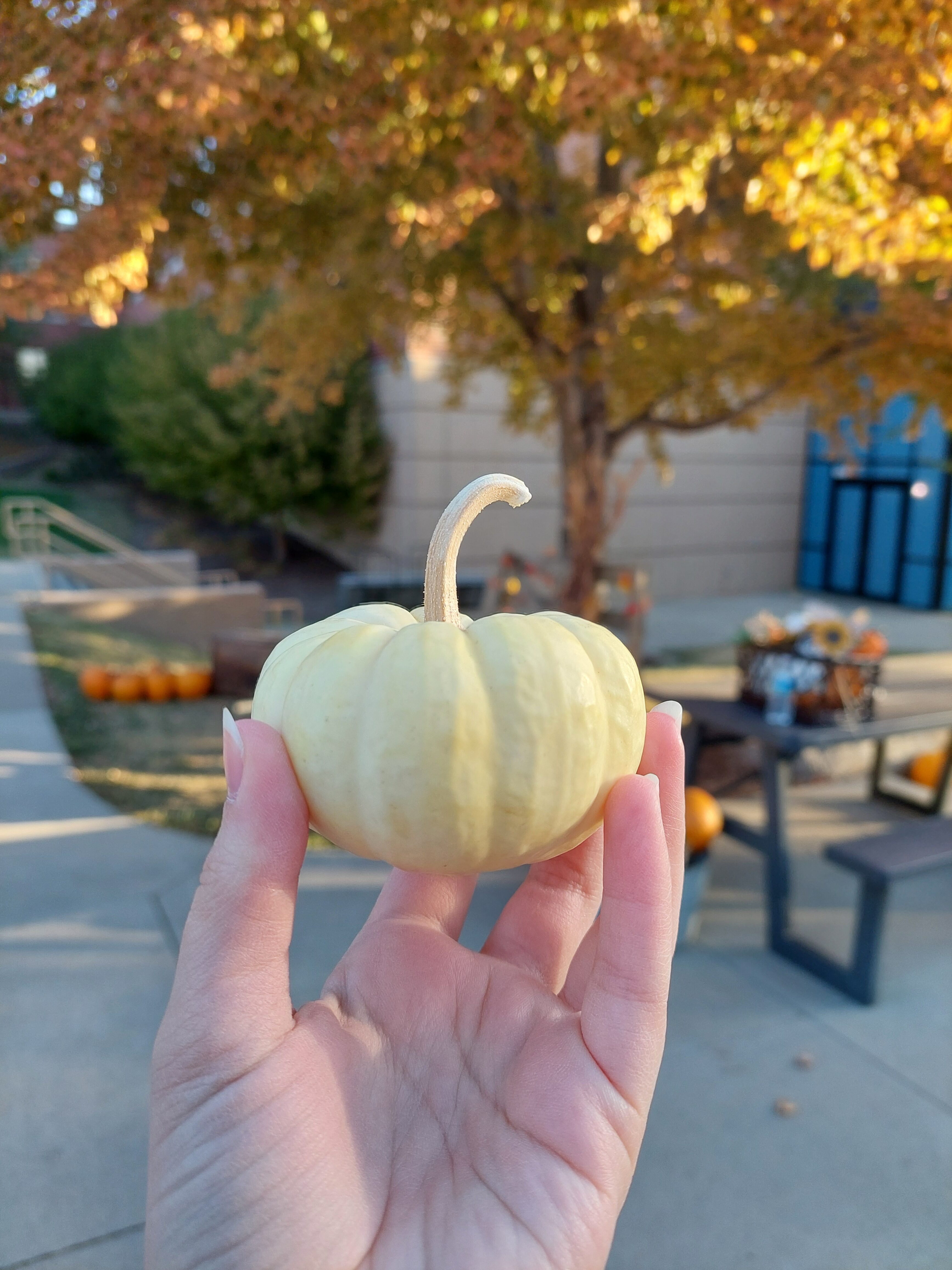 - A miniature white pumpkin.