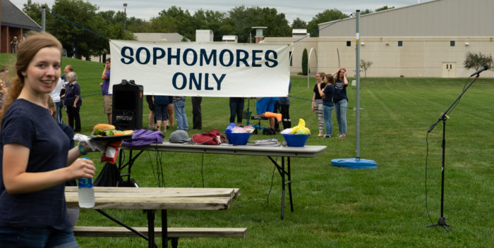 Sophomores ate hamburgers and hotdogs, and endless cookies and drinks. Professors also gave out prizes for winning games, and everyone received a sophomore tailgate shirt. The tailgate brought many laughs and good fellowship.