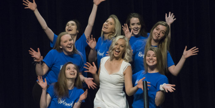The Bells, Spring Weekend 2019’s women’s champion, poses at the end of their lip sync. Photo by Sonja Brandt.
