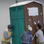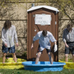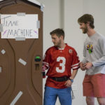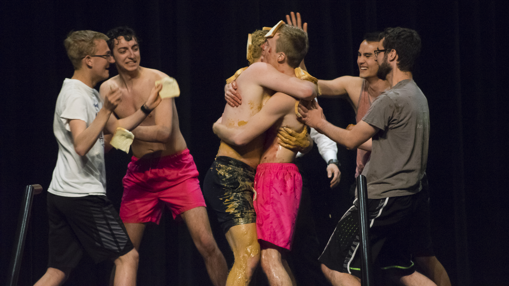 Tim and Bob’s Awesome Adventure continued their time travel theme with the Porta-John and danced to songs from several decades, including Footloose. Team Team began by running through the audience and acting like monkeys and then covered themselves in peanut butter, jelly and bread while hugging each other, creating a human peanut butter and jelly sandwich.
