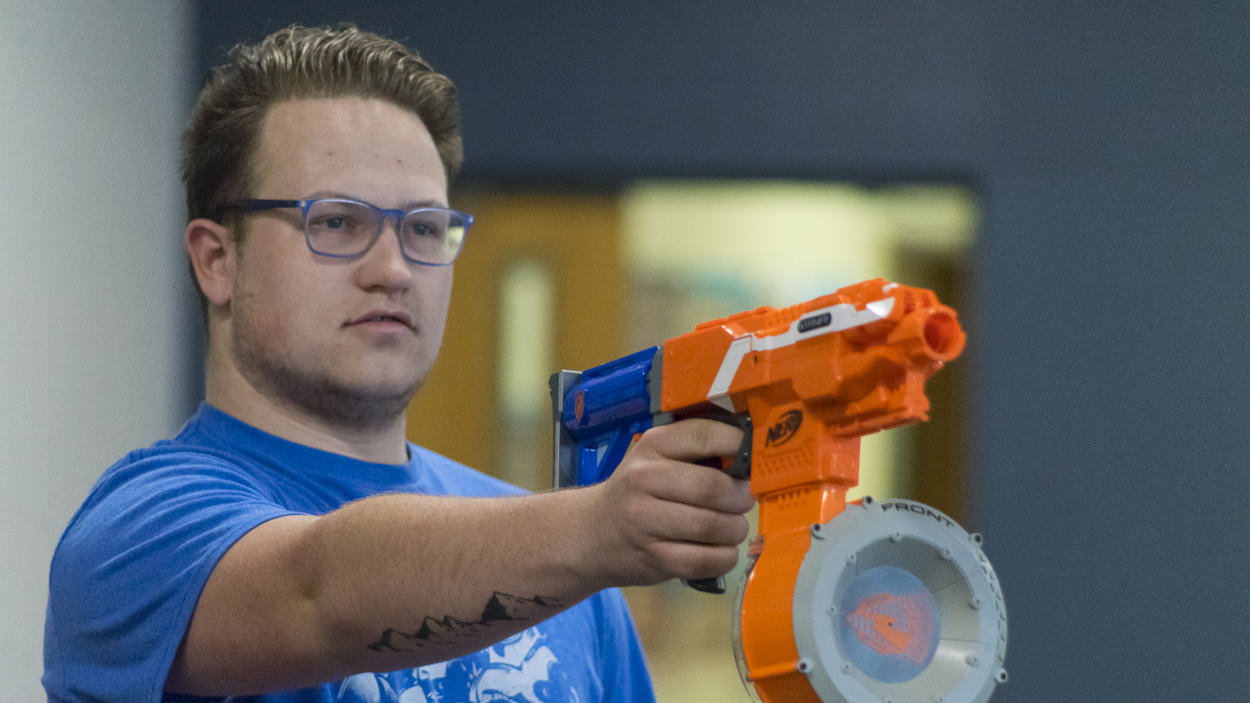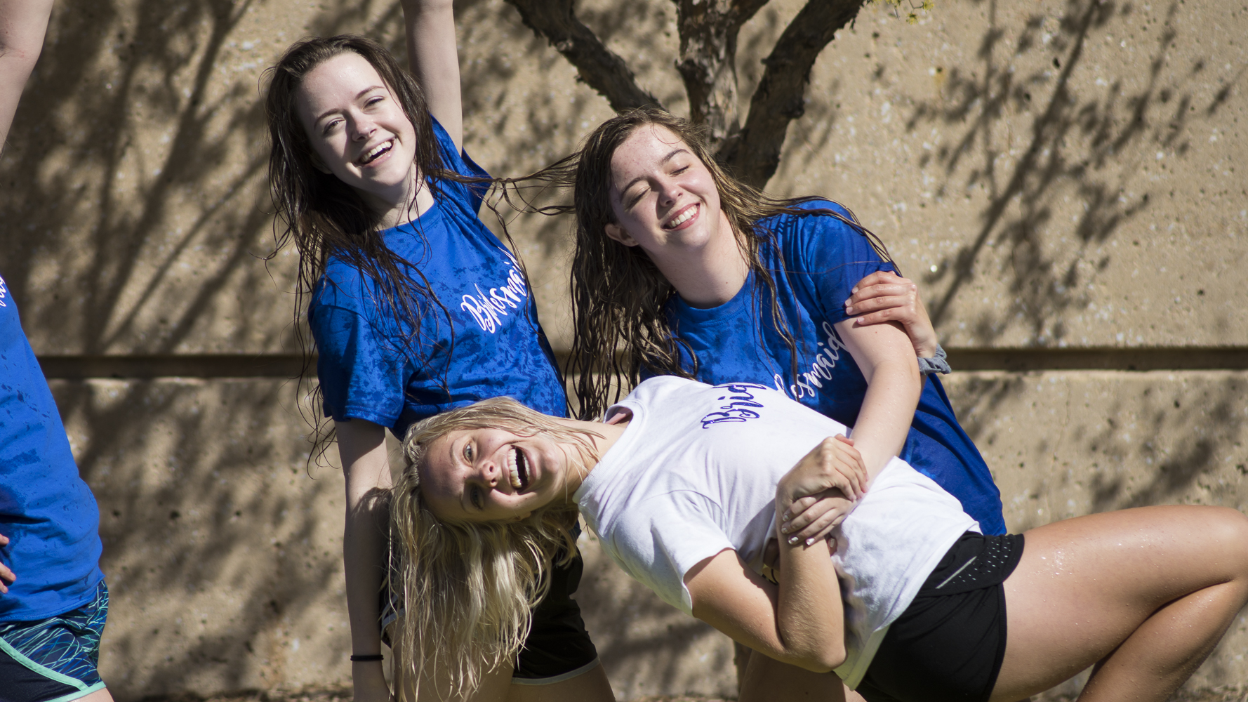 Other Saturday events included the Sync Swim, where teams performed synchronized dance routines in kiddie pools, and an obstacle course that stretched through the Thom Leadership Education Center. The course included running up the eight flights of stairs commonly known as TLEC mountain, singing songs, and helping blindfolded teammates through a hallway of balls and pool noodles.