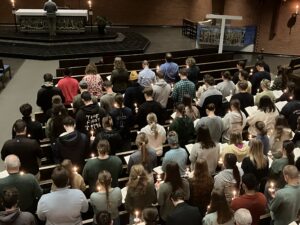The service included the order of responsive prayer, which was done by candlelight and involved the congregation as well as the pastor. Scheck then entered a time of personal prayer, where he prayed on behalf of the congregation for those grieving and hurting.