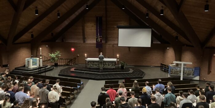 St. John Associate Pastor Nathan Scheck led the service and prayed for the students involved in the accident. He gave special emphasis in his prayer for Ramirez, a passenger in Wing’s car. According to the pastoral care team at St. John, Ramirez’s condition has shown signs of improvement.