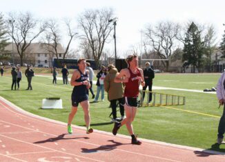 Senior Hannah Beintema completes a lap. Photo credit: Maddy Peters By Kai Olbrich Sports Editor In a meet...