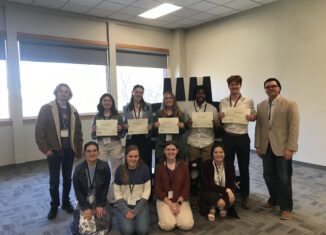 The group of attendees at the Golden Leaf Awards from the Sower student newspaper. Photo...