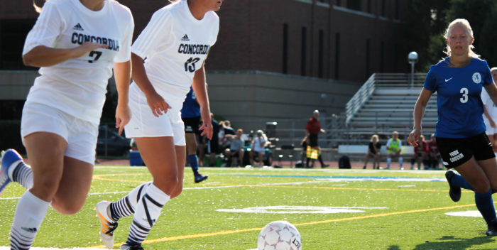 The Concordia women’s soccer team broke a five-game winning streak with a 2-1 road loss to Bellevue University in Omaha on Wednesday, Sept. 14.